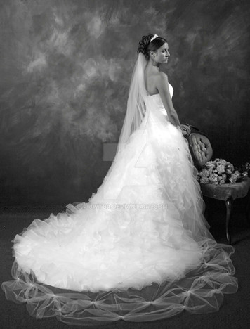 It's lovely, so elegant. I'm wondering if the coldness the contrast of the black background and white figure is... perhaps because her groom isn't at her side?