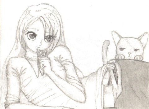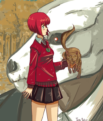 Haha thanks Drew ;A; I think it looks a little weird to me just cause I actually drew it 3 weeks ago, since I didn't finish it right away now I see mistakes xD But Touko is very badass! She's from a series I finished about a month ago and she's one of my favorite characters; she's a mage so the cat is actually one of her familiars! And no, it's not good to smoke at all but she always is so it seemed right to draw her like that xD Thank you for your comment, I'm happy that you like it even still ;A; I did like the colors I used for the background, warm skies are fun to paint~