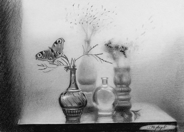 #blackandwhite #digitalartwork #graphicart #krita #pencilartwork #spring #springtime #stilllife #stilllifedrawing