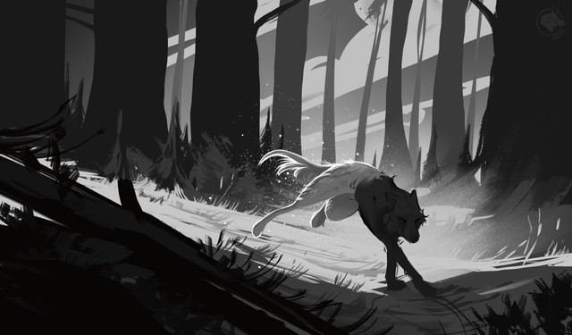 Прекрасная работа, очень нравится динамика и атмосфера рисунка. Даже чувствуется этот сильный ветер, что гнет деревья..