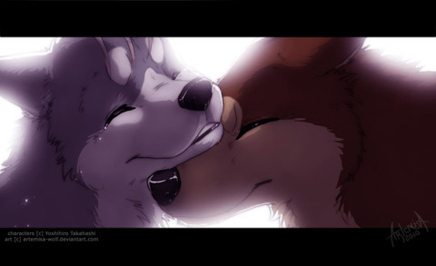 Omg this is such a gorgeous piece! The flow of the water and the moonlight is outstanding. Especially how beautiful Oha's hair look and Azzai as a pup makes it a lot cuter as well!!