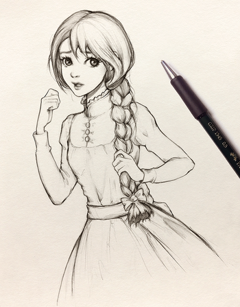 6 - I draw again over the faded lines from stage 5, adding shading and details.