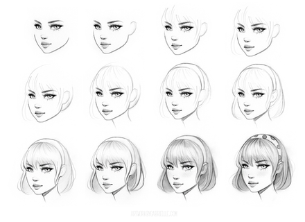 4 - I roughly sketch the features. Here I also adjust the shape of face if needed, to better complement the features.