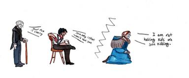 who am I even fooling at this point I haven't drawn anything else than this AU since last Friday so you'll just have to put up with the spam, sorryTraditional sketch coloured with photoshop, feat. Jane, Thor, Loki and Sif