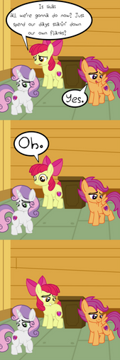 Β The most horrible thing about this gag is that its saying Scootaloo is a flightless bird and will never grow out of it.