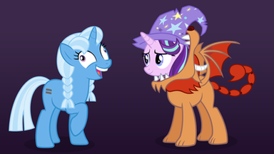 It looks like Cadence is now returning Chrysalis the favor of impersonation. I wonder how Flurry Heart is going to feel when she sees her mom dressed up like a bug?