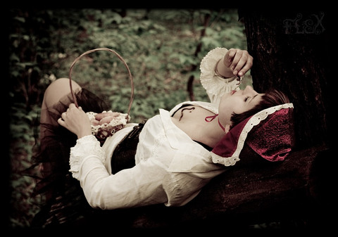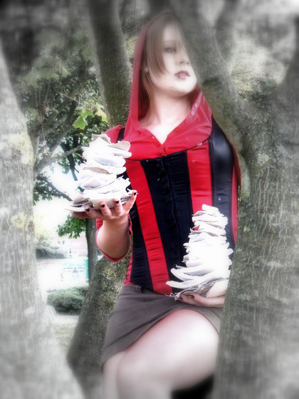 luv this humorous photo of a riding hood who has learned to come equipped for her grandmother's needs..... and a very mature and attractive red.... luv the belly