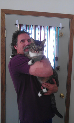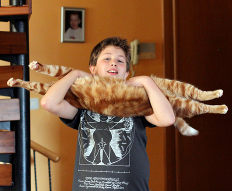 He is a Maine Coon, and a more even tempered, good natured cat you will never find. The down side is all of that hair. We have to get his butt trimmed from time to time. He does not care for that much.