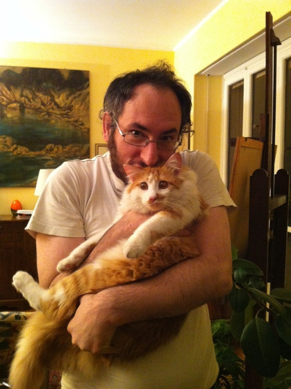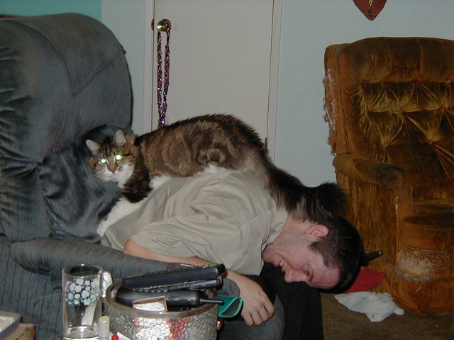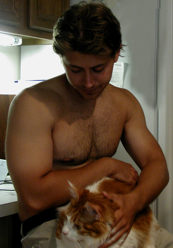 Fluffy kitty!! Heh heh...Funny expression on the guy's face.