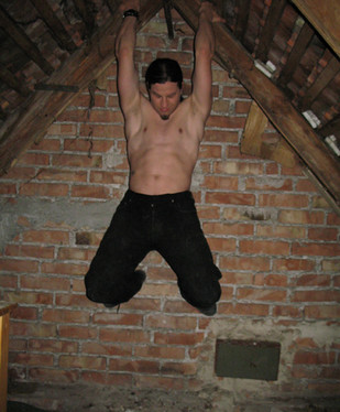 What you don't see is when he fell off. He can hold it a lot longer if he wears socks, but i wanted the bare feet.