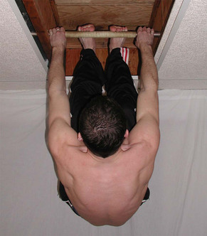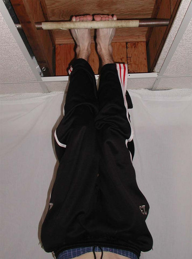 he is going to hang by his toes, yes, his toes. He told me he could so i made him show me.link if you use