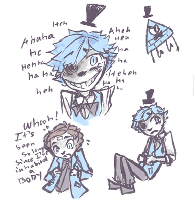 Yellow Guy(Bill Cipher? Doesn't say): Hey, try to act less, it get's boring, ya know? The kids get scared