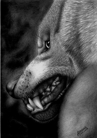 The title and the fact the wolf is angry reminds me of when I was little, my father and grandmother told me about how dogs show thier teeth they're angry, "so don't go near a dog if it's smiling at you." Heh... even at that age I knew they don't look happy and smiling at all. Anyway, it's an amazing picture, and I'm sorry for writing so much. XD
