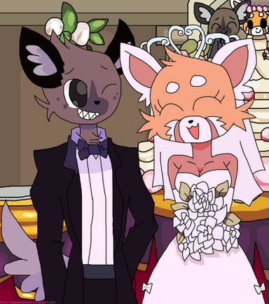 i was originally going to do a picture of Nick x Judy and Legoshi x Haru, but i wanted to get these pieces released before aggretsuko season 4 comes out (this thursday) and since the first three just happened to be wedding pics and no such thing has happened in the other ship's fandoms (at least i think for Beastars, i havent actually watched it oof)oh gosh haida ur forehead's bigger than sakura's u ok???