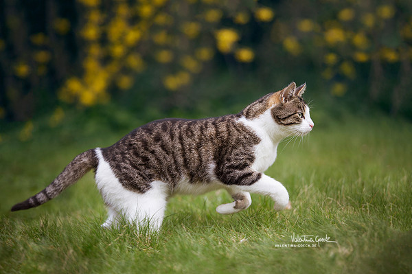 What beautiful cats, David.Β Look at that coat, at that tail!Β Nice action shot.