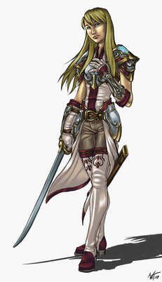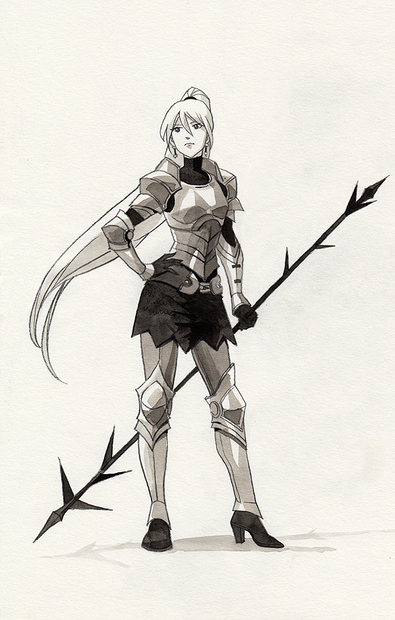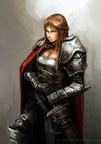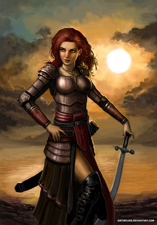 I've gotta say, my favorite detail about this artwork is that her Armour will realistically protect her. Seeing this is such a relief from all those scantily clad "Armoured" women that run around in what might as well be underwear.