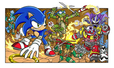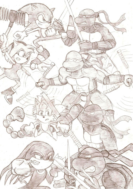 #pizza #tmnt #crossover #donatello #knucklestheechidna #leonardo #mikelangelo #mutantturtles #raphael #sonicthehedgehog #tailsmilesprower #technodrome #teenagemutantninjaturtles #segacharacters #segasonicthehedgehog #segasonicteam #sticksthebadger