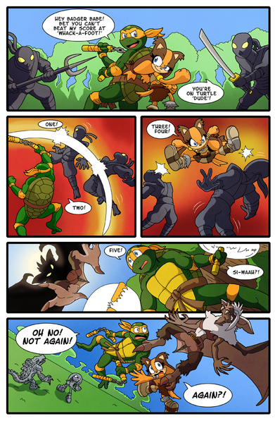 Sticks has two eyes on you Mikey.... And I think Raph has a new playmate.