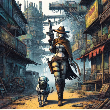 #videogamefanart #warrior #digitalart #cartoon #apocalyptic #fanart #fantasyart #scifi #gun #military #dog #dogmeat #fallout #mutts #wanderer #western #wastelandgirl #girlfemalewoman #fallout76