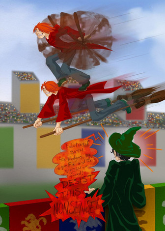 I'm aware this is fairly old work (it says 2008 on the info) but I hope you do more work for the Weasley twins soon. You write and draw their personalities perfectly.