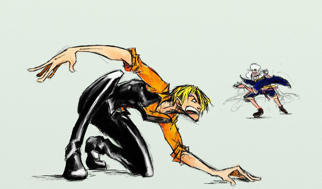 Hehe, well, how many fighting scenes are you gonna do with Sanji, huh? This is like, umm, the 4. one? Not that I mind, because they're always so goddamn AWERSOME XDDD But, despite how much I this guy, I'm starting to miss some Zoro- or Luffy action... Ach, don't mind me! I'm just talking to myself, so DON'T LISTEN! Really. I'm sure you have plenty enought to do as it is. But anyways, keep up the good work!