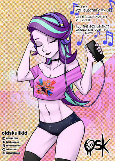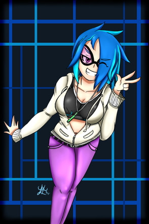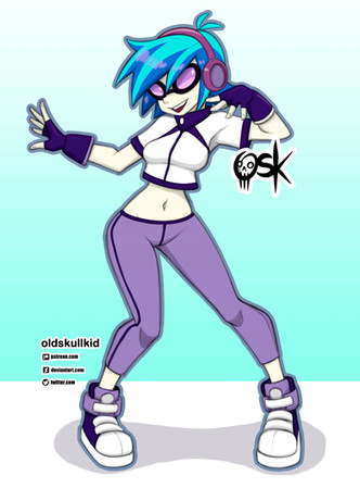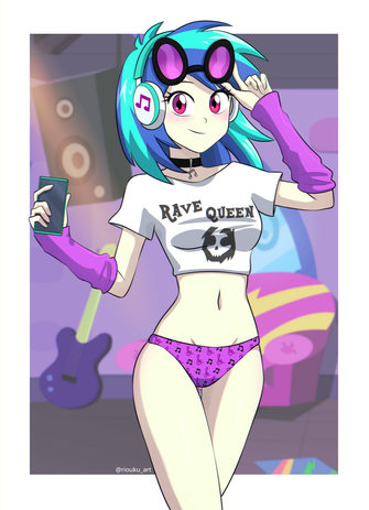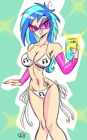 #cute #dancing #headphones #hips #osk #playful #sexy #djpon3 #equestriagirls #vinyl_scratch #oldskullkid #bikini #gloves #stockings