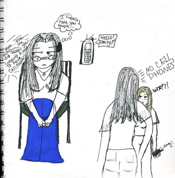 This is "my Whoe" and "my lil cousin"I was tryin to so some photography with em and just take a bunch of pix...then go through and pick the best one...then use and a lil photomanipulation and all that good stuff.....Well They aren't the best models and they had problems posing...Sooooo I snap and say "Don't look up AT the camera!!" Then Michael asked "what do we look at then?" Bein a lil pissed at the question "cuz you don't have to look at anything to pose" I say sarcastically "Pick a boob and look at it!!!" soooo they did lol they made funny faces so I took the pic....