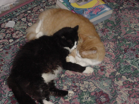 Aw cute picture. ^_^ Though there is a boob shot. Haha. You both look cute in the picture though. ^_~ This kind of reminds me of my cousin Autumn and Celeste.