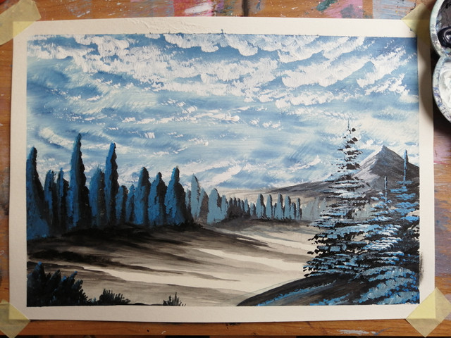 J'ai tenté de reproduire une peinture de Naschi pour m'améliorer à l'acrylique. Je ne me venterais pas car c'est pas original. Juste un recopiage tout bête.œuvre originale de Naschi : naschi.deviantart.com/art/Wint…