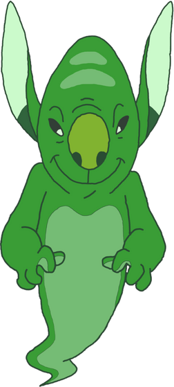 He is one of the failed prototypes of Stitch , possessing all the same powers, but turned out to be a real klutz; he accidentally knocks over and/or breaks anything he touches and only says, "Woops!" after doing so, hence his name. His one true place is at Kokaua Town Lanes as a champion bowler on Pleakley 's bowling team, the Kokaua Bowling Brawlers.Weight: Medium