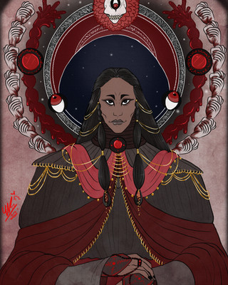 So last-last halloween i made a little artwork. I wanted to improve it cuz it looked kinda weird. So I did- but as I was working on the full design, I accidentally left procreate while I was messing around with the curves and now I lost a lot of detail and she looks a lot creepier lmao. So I kinda gave up,, might fix it another time.