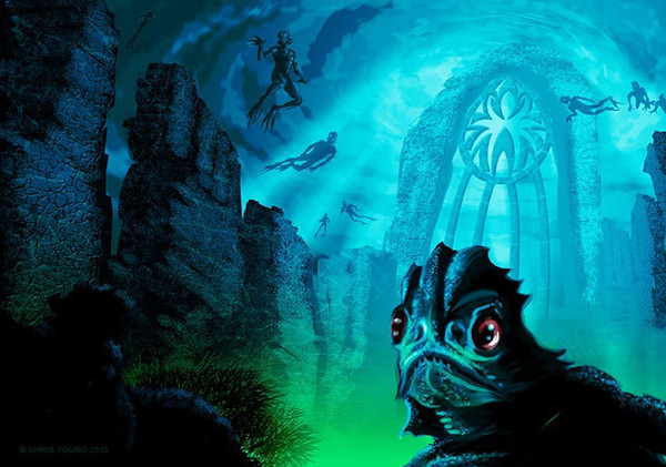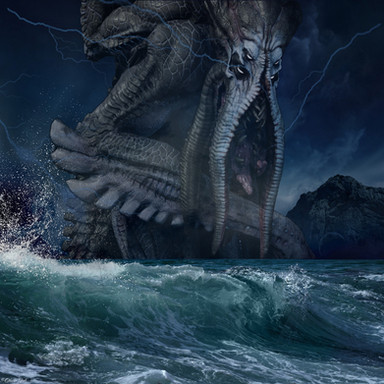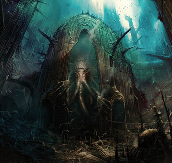 In some Lovecraftian alternate world, Captain Nemo aboard the submarine Nautilus happens upon the slime covered ruins of the eons old sunken city of R'lyeh... inadvertently awaking that which should not be... the preternatural horror some screamed out in insane terror to be... CTHULHU!--