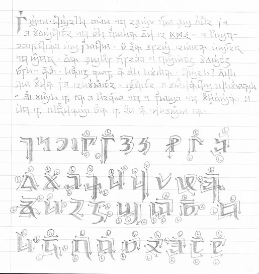Alien language... I should really get a better handle on the phonetics and crap before I make an alphabet, but whatever. Why do I always do these things backwards...Based on Chinese, Arabic and Hungarian.