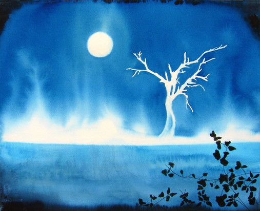 #dark #dreamy #enigmatic #haunting #light #mystery #otherworldly #painting #tree #contemporary_art #art #olle_gudbrand #oil_on_canvas #indie_art #branches #silhouette #surrealism