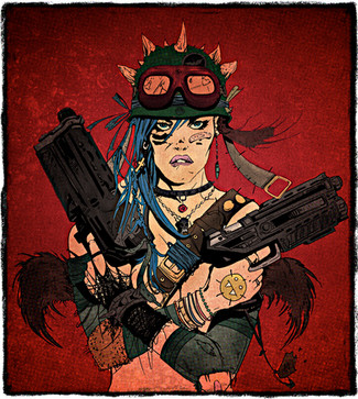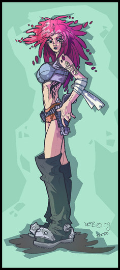 Doubled-gunned and smoking.Tech: Illustrator CS4, vector shapes and gradients, wacom tablet