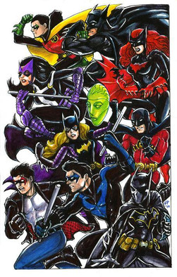 I understand. When I drew this, both Superboy and Kid Flash were dead. Those deaths were very wasteful. But I felt that they needed to be in this image, in the company of some of the characters that make the DCU interesting. Glad the people at DC came to their senses and resurrected them (and Spoiler, and Osiris).