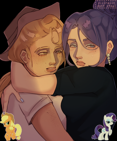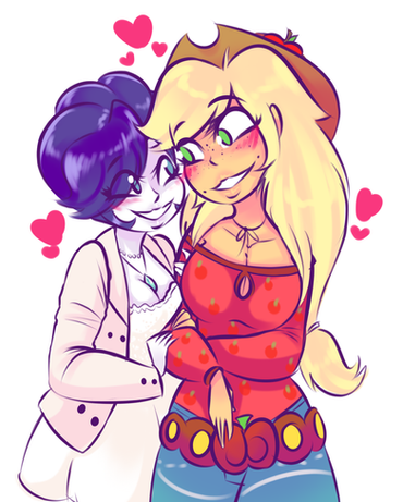 This is so freaking cute, Applejack and Rarity having a moment.... Hope you'll make a Flutterdash drawing too soon, they are my number 1 OTP^^
