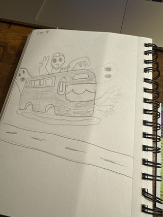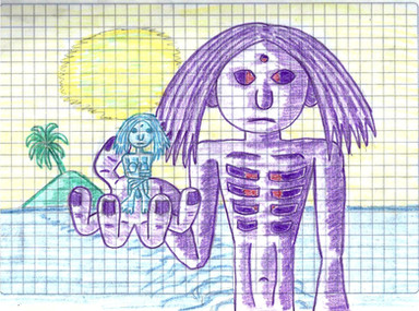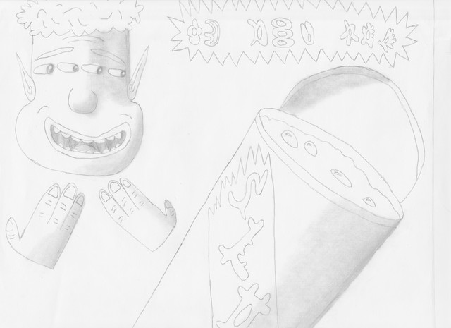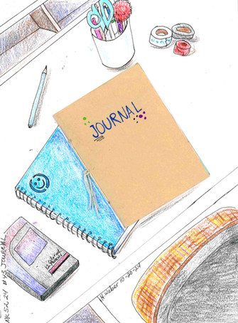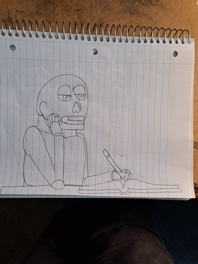 Aquí dibuje el entorno y momento en que mi última serie de dibujos emergen.I was thinking about what draw, and finally I draw that I see, my drawing entorn :3