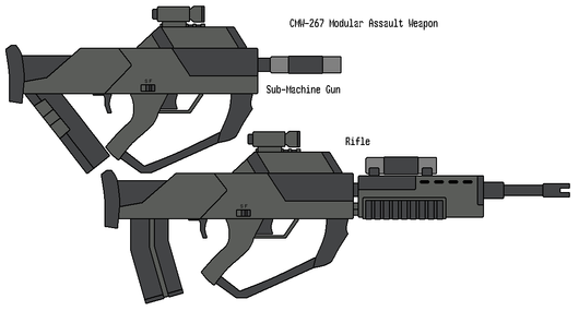 Whoops, I forgot to mention that it's another particle rifle. That's my cheap excuse for not designing mechanically accurate weapons XD.