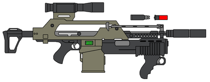 Standard Coalition sniper rifle, less powerful than its Terran counterpart. Each clip holds enough energy for 12 shots, and the rifle can function in 3-round burst mode.CSR-776 Laser Sniper Rifle