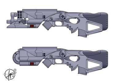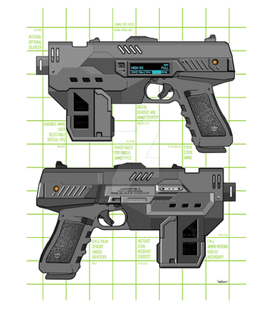 I've been playing plenty of Half-Life 2 recently, and I just realized that I don't have my own kickass revolver design. So here it is, available in 6 or 10 inch flavors. This thing is literally a handheld cannon, easily capable of breaking your wrist or dislocating your shoulder if you hold it incorrectly. The rounds both contain high density batteries to power the Gauss coils for a single shot. A rechargeable battery pack in the handle of the revolver can power up to ten dud shots, while relying on sixty good rounds to fully recharge.The work contained in my gallery is copyrighted omegafactor90. All rights reserved. My work may not be reproduced, copied, edited, published, transmitted or uploaded in any way without my written permission.