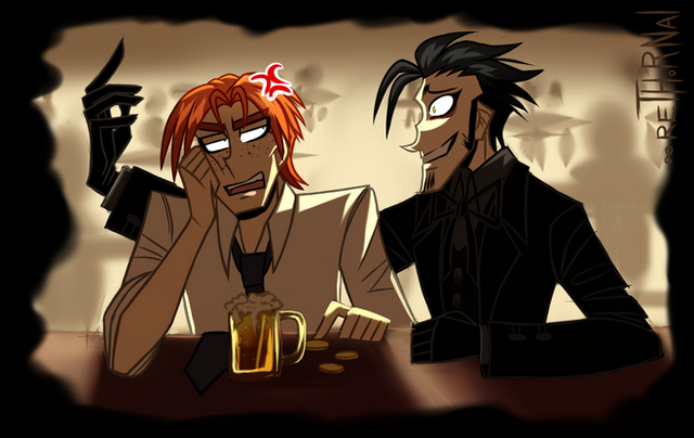 I felt I should draw something less dreary... but then I ended up drawing these three, and well, I kind of realized the it doesn't matter what I draw if Beijeye is involved, it's still going to have a dreary undertone... 'cause he's dead and all, and his death is basically what destroys any bit of normalcy in Vilkas's life and any reason for Handwing to not go off the deep end... Oh, well, so much for that idea. Have some dreay-ness disguised as something not-quite-so-dreary.Handwing thinks of Vilkas as some annoying brat that Beijeye just let bug them for some dumb reason. He hates the way Vilkas followed Beijeye around and idolizes him because he thinks Vilkas didn't really know Beijeye the way he did. Beijeye had a lot of problems that only Handwing knew about, and his demeanor would always shift whenever Vilkas was around; partially out of the fact that he didn't want to trouble a kid with problems he was too young to understand, but also somewhat genuinely. Somehow Handwing doesn't get that helping a ten year old, was a much less stressful way for Beijeye to get his mind off his own problems than trying to help his, even more fucked up, junkie best friend.