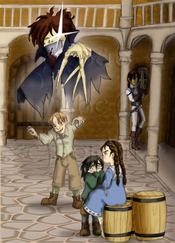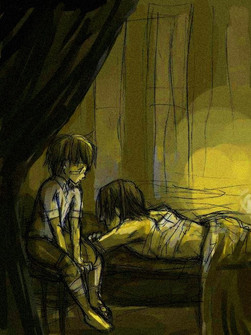 This is supposed to be just after that first incident, his parents are arguing about what to do/what might happen. Ichibay, being the only somewhat mature one, is the only one actually concerned about Requiyen. Ferri is just thinking "Ew, he got blood on my coat!"