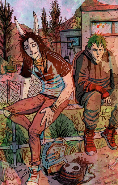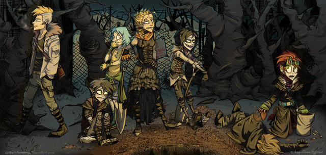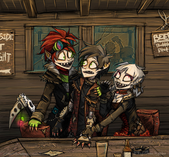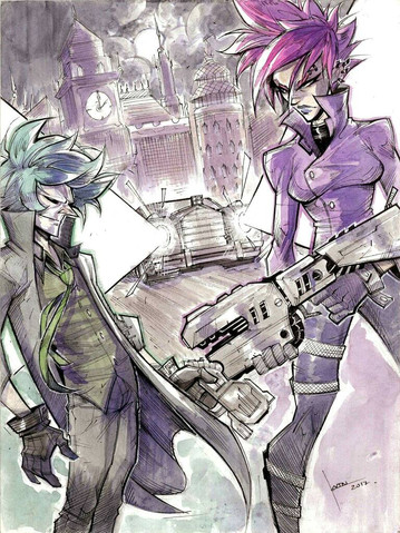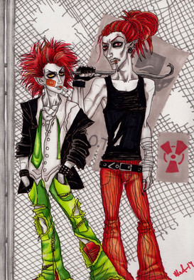 So, for the most part, I've been trying to keep from crossing a certain point in the timeline, which meant avoiding drawing these two together, since within that time frame, they haven't met yet. But they do eventually, and I caved because I love their interactions. Nothing specific, just the two psychos fucking around in an old graveyard somewhere. XPughk... sort of rushed some things. But I'm out of time. Time to call it quits at 1am and not be back until tomorrow night. Again.