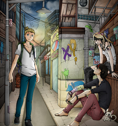 your style is so so so killer, man. I adore the colors and the way you draw lines, and all the little details! i could stare at this for hours and continue to pick out new little bits and pieces. ;;v;; beautiful work homie~