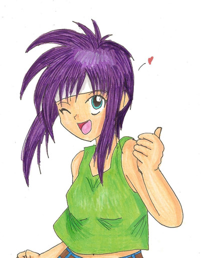 I especially like the coloring of her eyes, and the shading on her shirt. Very vivid colors, too.