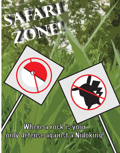 There's no life lesson for this pokemon picture either. Rocks don't float, maybe?I was talking with someone about the posters I've been making and we talked about how posters like that would probably be pretty common in their world. Then I got to thinking about how there are no other animals in that world but pokemon, so any sign we have with animals, they would have a version with pokemon!
