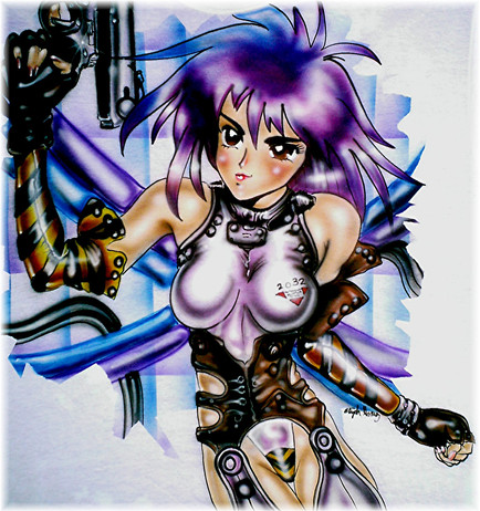 This is one of my older Ghost In The Shell drawings, based on the Stand Alone Complex series.Colors were done by Ragathol of MSHP, and pencils were done by me.