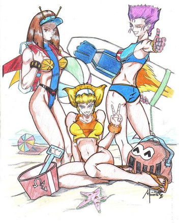 Originally, this drawing only had the 4 characters and the car. ragathold threw in a nice background of the Tokyo skyline, and made it look like it was taken from the series itself. He did wonders for the colors as well.