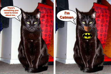 there is a paw behing batcat's head i wonder who it is *thinks* ah ha it be joker